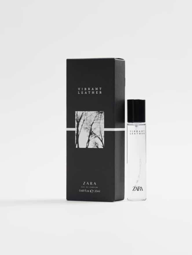 Perfume zara vibrant leather de 20 ml eau de parfum amaderada, la pirámide olfativa incluye notas de bergamota, bamboo y acorde cuero