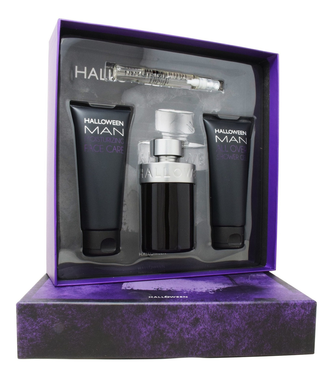 SET HALLOWEEN MAN es una fragancia de la familia olfativa Oriental Amaderada para Hombres. Halloween Man se lanzó en 2012. Las Notas de Salida son mandarina, albahaca, hojas de violeta y martini; las Notas de Corazón son lavanda, flor de azahar del naranjo, flor de jengibre y canela; las Notas de Fondo son almizcle, ámbar, vainilla y cuero. Este set contiene: EAU DE TOILETTE 125 ML. EAU DE TOILETTE 10 ML. GEL DE BAÑO 100 ML. BALSAMO HIDRATANTE FACIAL 100 ML.
