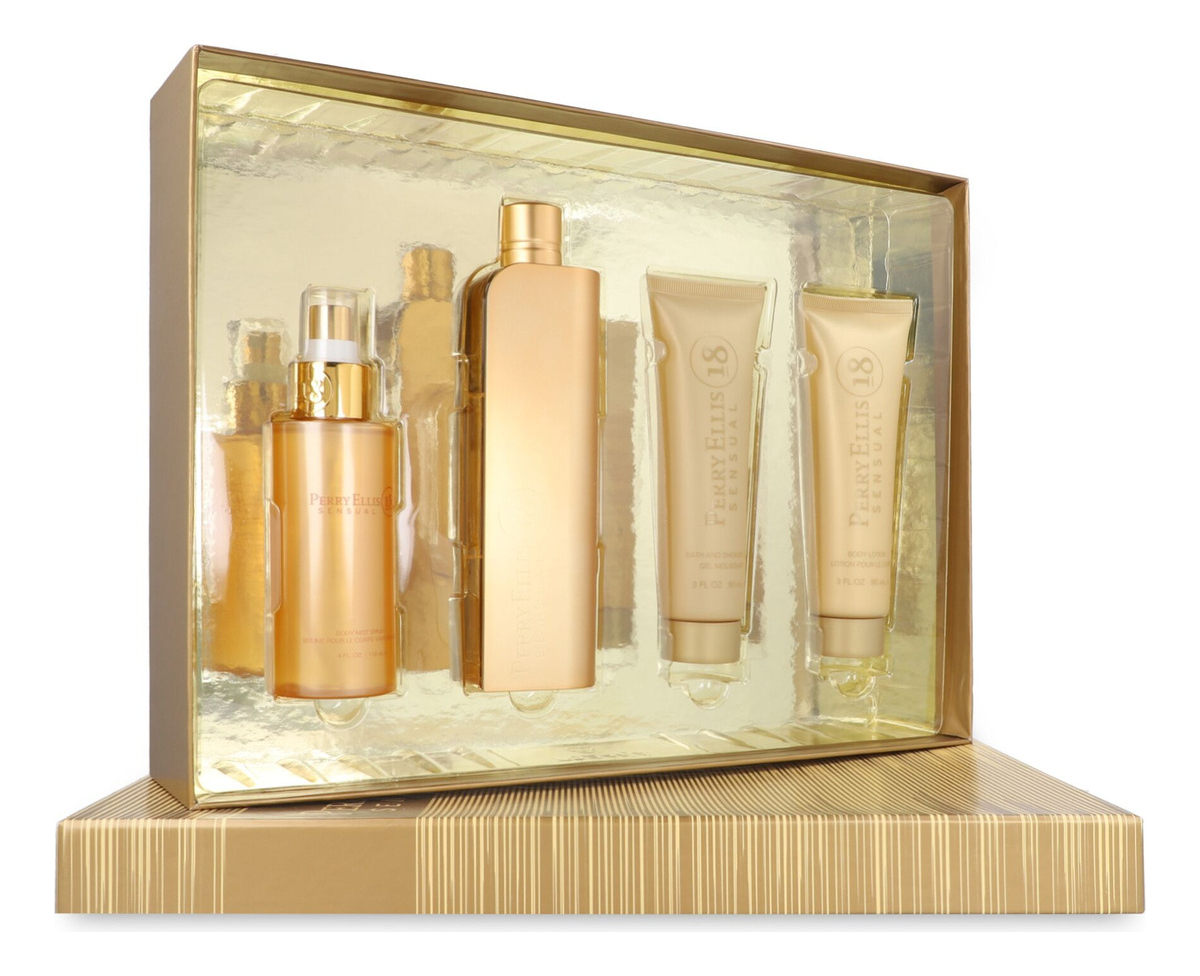 SET PERRY ELLIS 18 SENSUAL 4PZS : 100ML EDP SPRAY SHOWER GEL 90ML BODY MIST 118ML SPRAY CREMA DE CUERPO 90ML EDP SPRAY