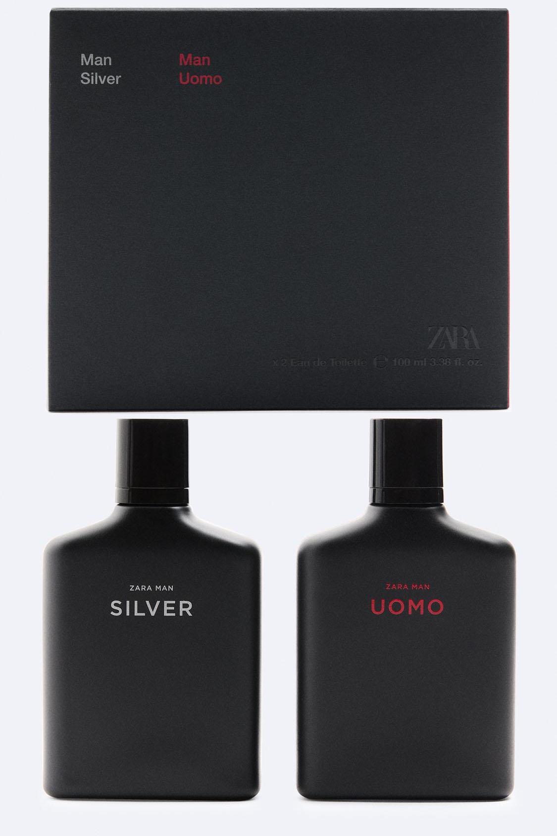 ZARA SILVER EAU DE TOILETTE 100 ML (3,4 FL OZ. ) + ZARA UOMO EAU DE TOILETTE 100 ML (3,4 FL OZ. ) ZARA SILVER: La pirámide olfativa incluye notas de limón, jazmín y patchouli. Es una fragancia fresca, moderna y luminosa. ZARA UOMO: Eau de toilette. La pirámide olfativa revela notas de bergamota, nuez moscada y ámbar.